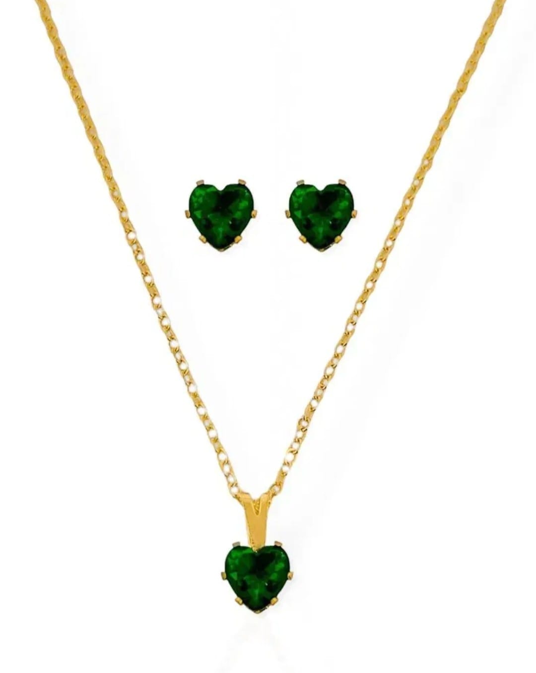Conjuntinho com colar e brinco de coração pedra esmeralda.